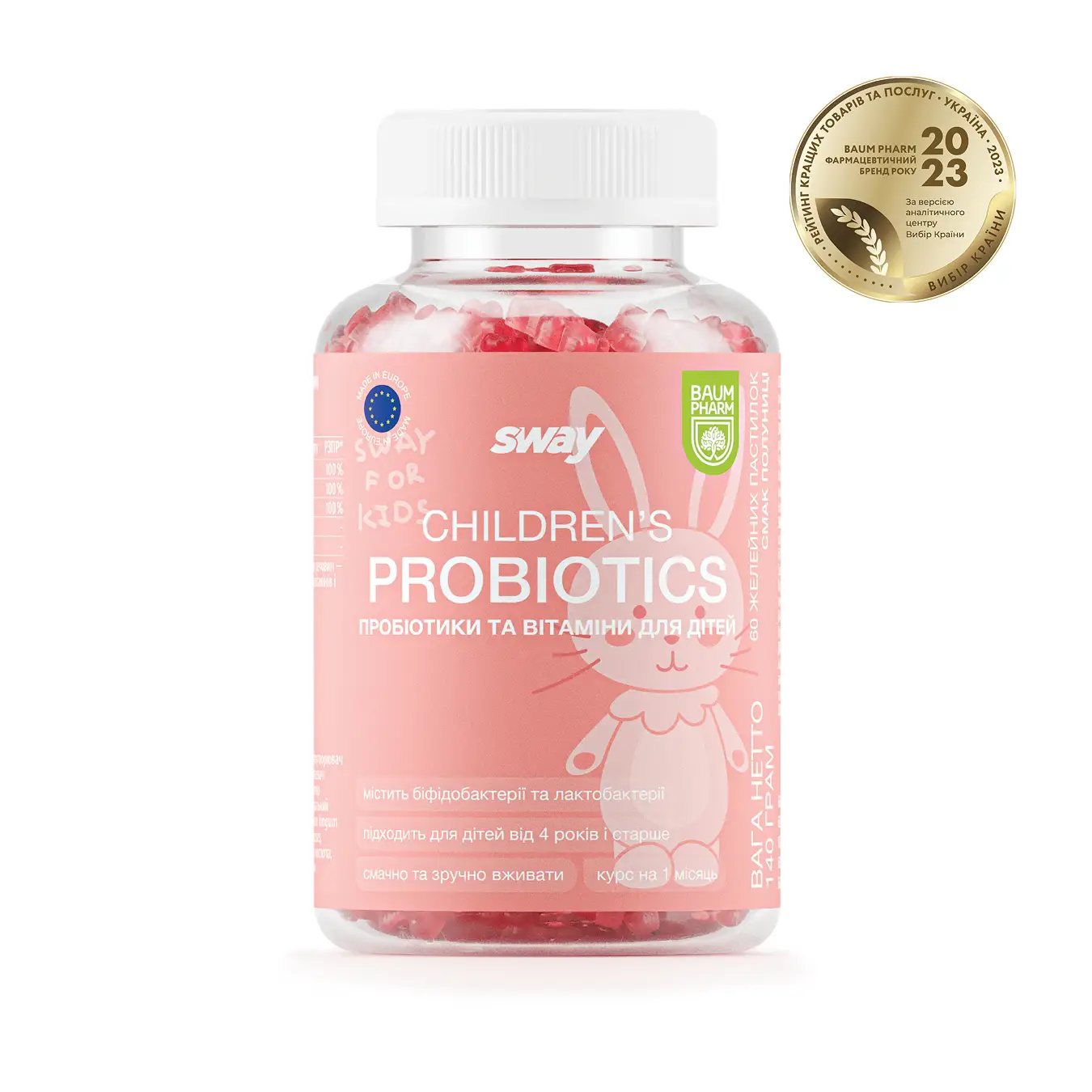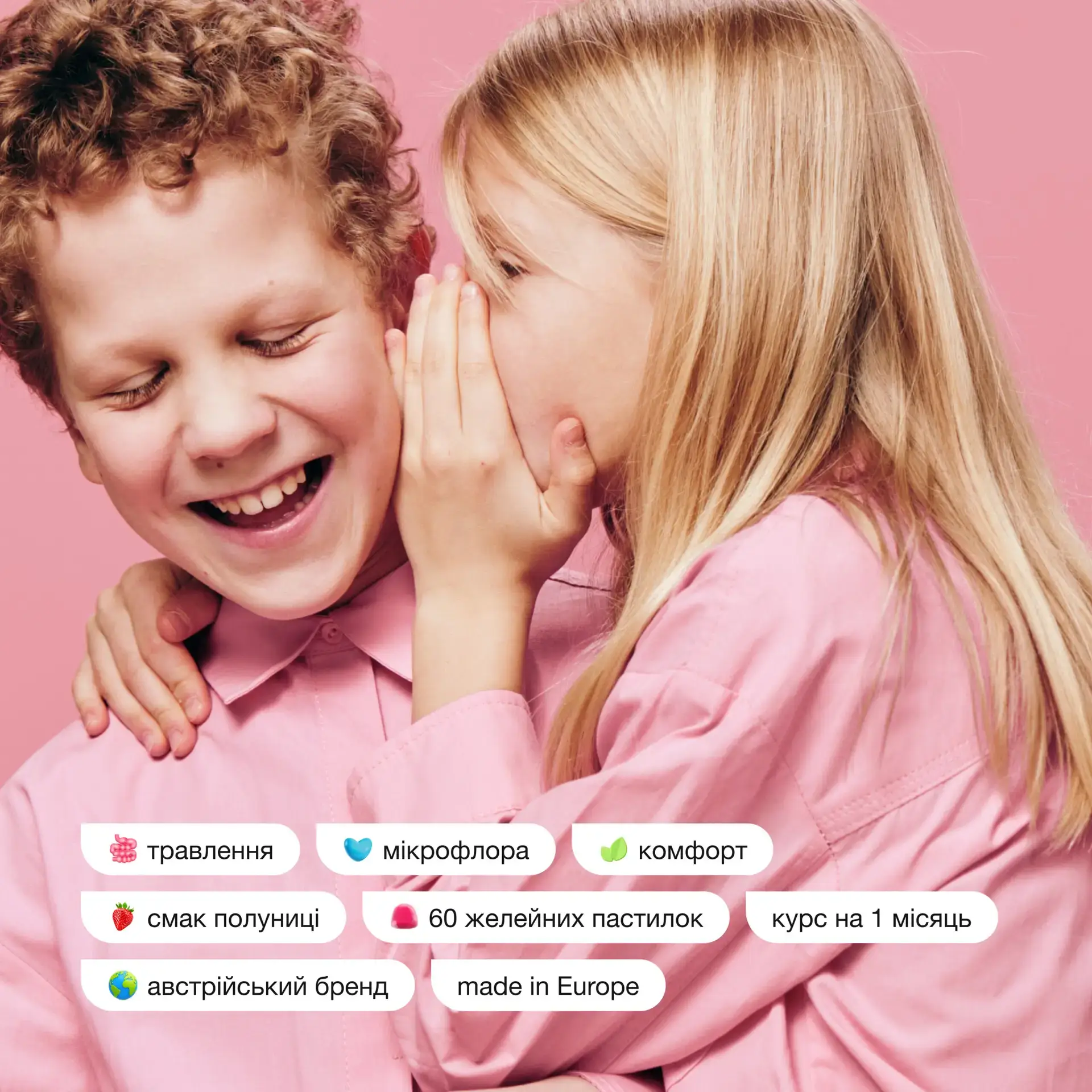 Probiotics + Vitamins Kids gummies support gut health and digestion while promoting overall well-being. With a combination of beneficial probiotic strains Bifidobacterium infantis and Lactobacillus rhamnosus, plus essential vitamins like niacin, pantothenic acid, and vitamin B6, these gummies help maintain a balanced microbiome and support digestive comfort—all in a delicious strawberry-flavored gummy.