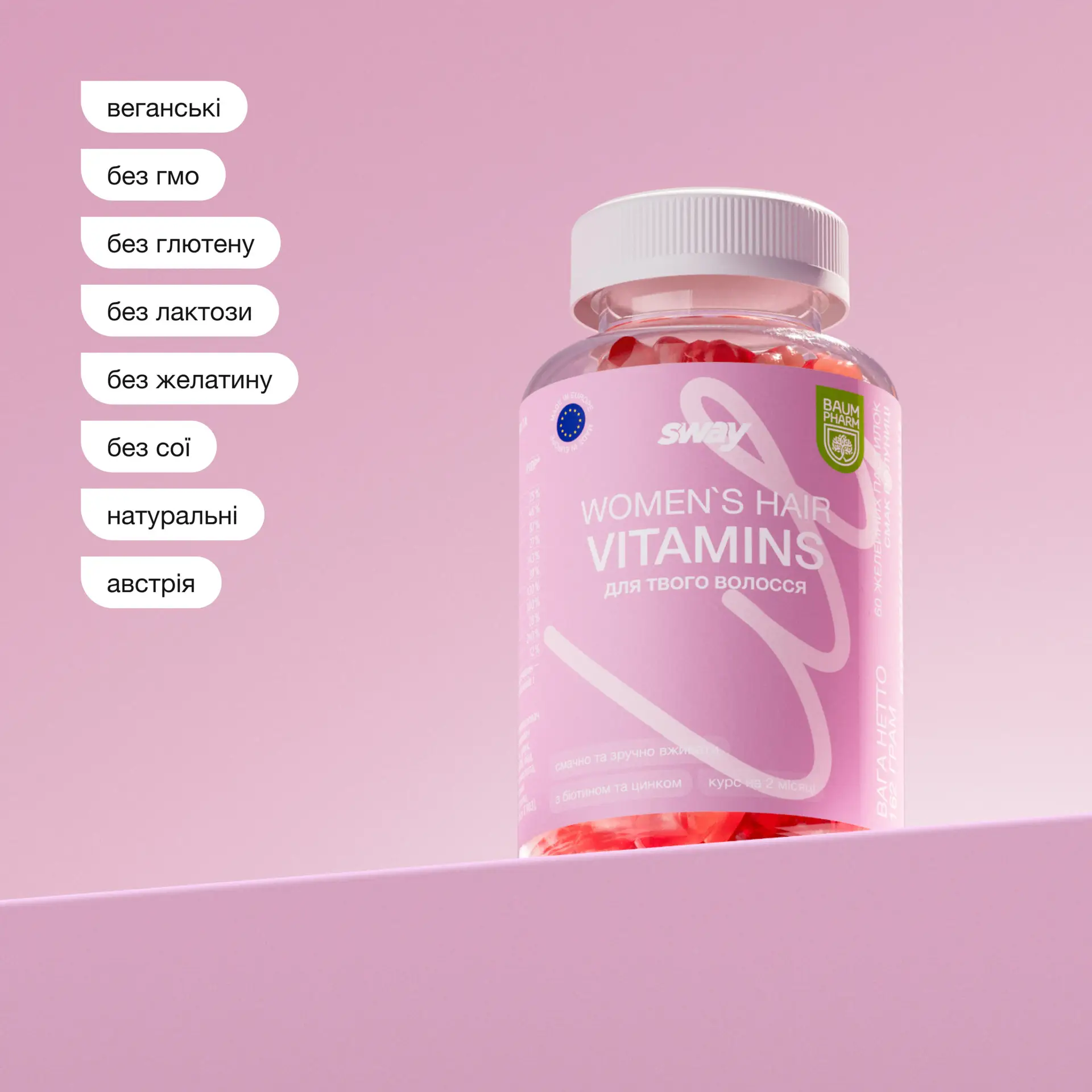 Women’s Hair Vit­amins are desi­gned to sup­port healt­hy, strong, and shi­ny hair from within. This powerful for­mu­la, packed with essen­ti­al vit­amins and mine­rals like bio­tin, zinc, and vit­amin C, helps pro­mo­te hair growth, redu­ce breaka­ge, and pre­vent split ends. A deli­cious, easy-to-take alter­na­ti­ve to pills, the­se gum­mies nou­rish your hair at the root for long-term strength and beauty.