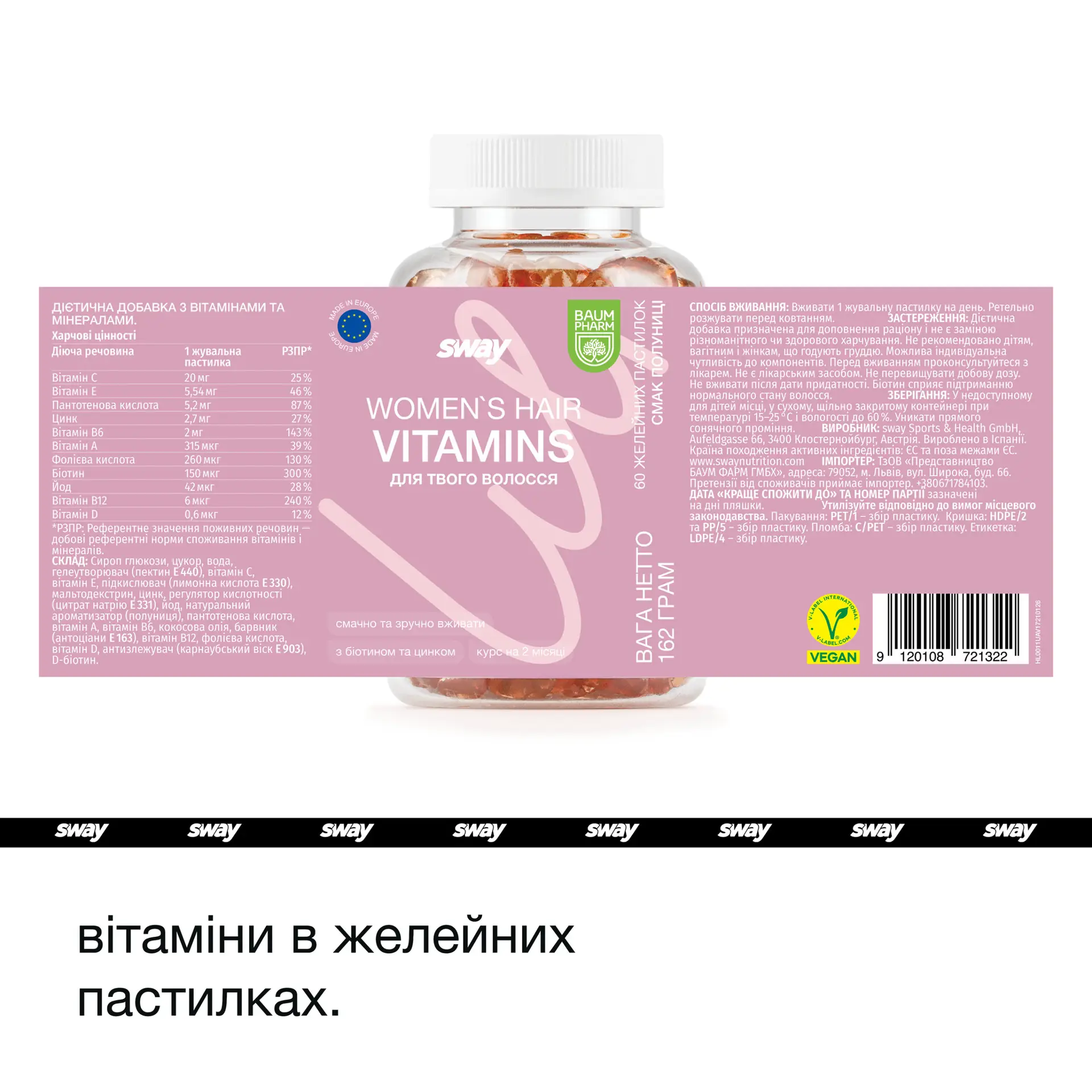 Women’s Hair Vit­amins pro­vi­de an essen­ti­al blend of hair-sup­port­ing nut­ri­ents, inclu­ding 42 μg of bio­tin (28% NRV), 5.2 mg of pan­to­the­nic acid, and 2 mg of zinc (143% NRV) to pro­mo­te growth, strength, and shi­ne. Bio­tin plays a key role in kera­tin pro­duc­tion, hel­ping to redu­ce hair thin­ning and split ends, while zinc con­tri­bu­tes to scalp health and hair fol­lic­le main­ten­an­ce. Vit­amin C (25% NRV) and vit­amin E sup­port anti­oxi­dant pro­tec­tion, pre­ven­ting dama­ge from oxi­da­tive stress. Addi­tio­nal­ly, iod­i­ne and vit­amin B12 help regu­la­te meta­bo­lic func­tions that impact hair growth, ensu­ring stron­ger, healt­hi­er hair. Unli­ke tra­di­tio­nal hair sup­ple­ments, the­se gum­mies pro­vi­de a tasty, con­ve­ni­ent way to sup­port vibrant hair wit­hout arti­fi­ci­al additives.
